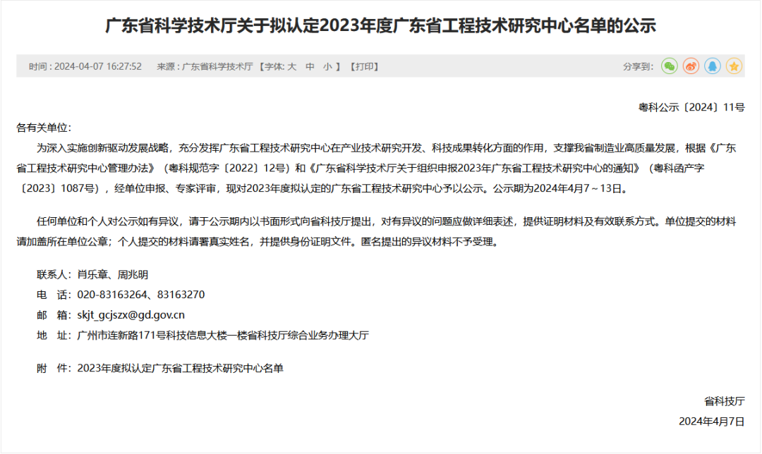 近日,廣東省科學技術廳發布認定2023年度廣東省工程技術研究中心名單,深圳芯能半導體技術有限公司通過認定和公示。