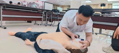 此次安全急救培訓主要涵蓋了安全急救知識技能,包括急救常識、傷口處理、心肺復蘇、急救器材使用等方面的內容。各事業部負責人、兼職安全員積極參與,認真聽講、互動,通過實際操作演練,掌握了急救技能,提高了應急救援能力。培訓過程中,講師詳細講解了突遇暈倒病人如何調整體位、打開氣道、判斷呼吸、實施人工呼吸、胸外心臟按壓等操作步驟,特別強調了心臟驟停黃金4分鐘的救治時限與正確撥打120的方法,加深了大家對救護流程的理解和記憶。