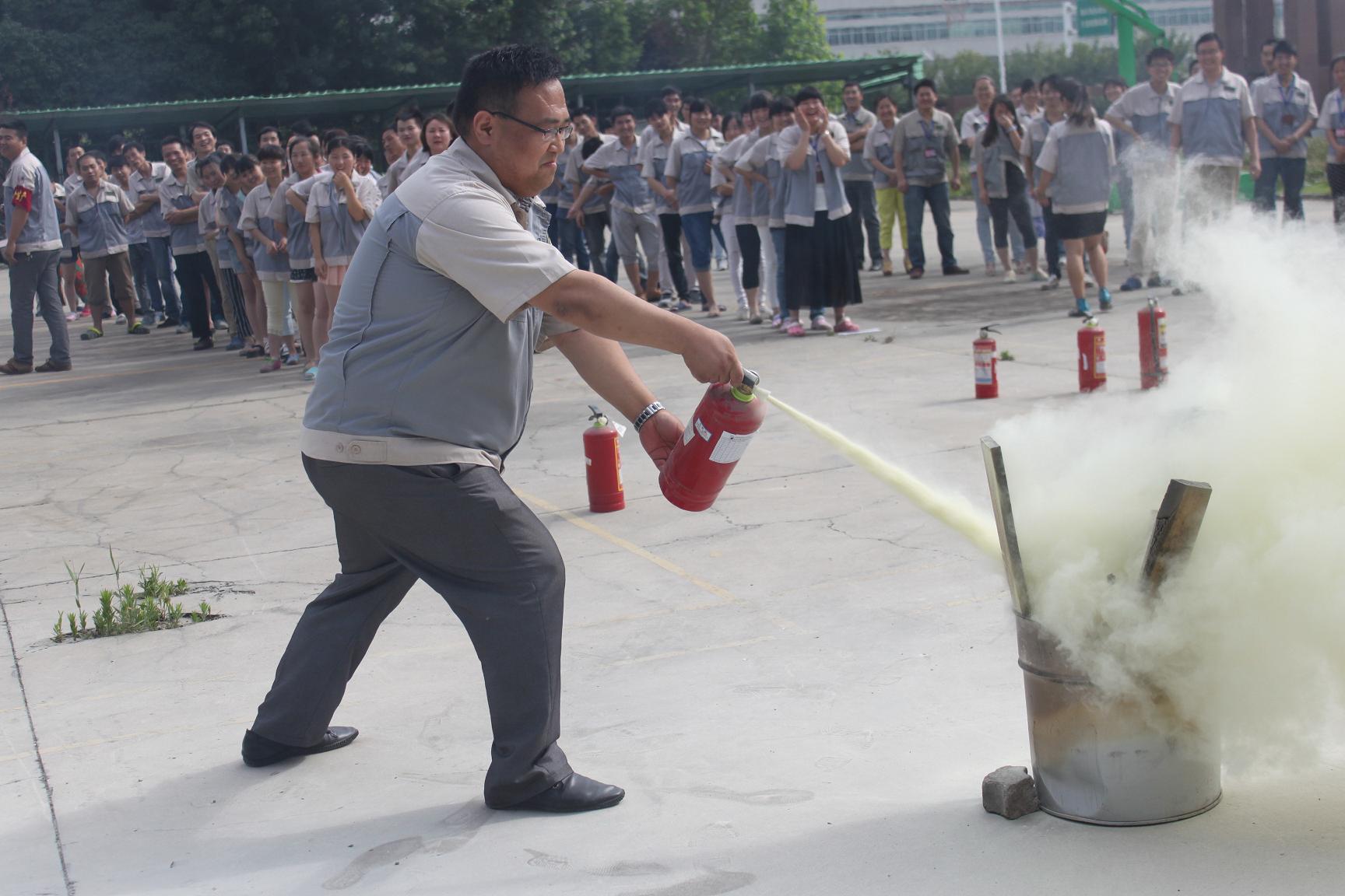 全體員工全部安全疏散完畢后,彩晶事業部還組織進行了滅火器的使用方法培訓,以及操作滅火器進行滅火演練。通過此次培訓,提高了員工的消防安全應對能力及消防技能。