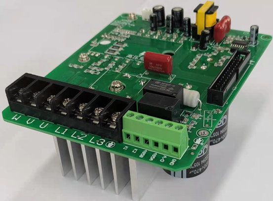 IGBT單管的裝配方式、絕緣要求處理、散熱方式等問題為都比較難處理的,我們提供一種集成電源+功率模組的應用方案,體積小,功能齊全的應用方案。該方案集成IPM、整流橋、母線電壓采樣電路、相電壓采樣電路、電流采樣、預充電路、繼電器輸出、電源電路。
